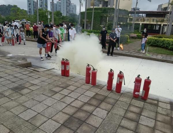 随后开展消防安全疏散演练,利用消防安全通道及时撤离模拟火灾现场。安全保卫处工作人员在教学楼南侧空旷处模拟火情,并有序组织师生使用灭火器进行灭火实操,演练过程有条不紊。