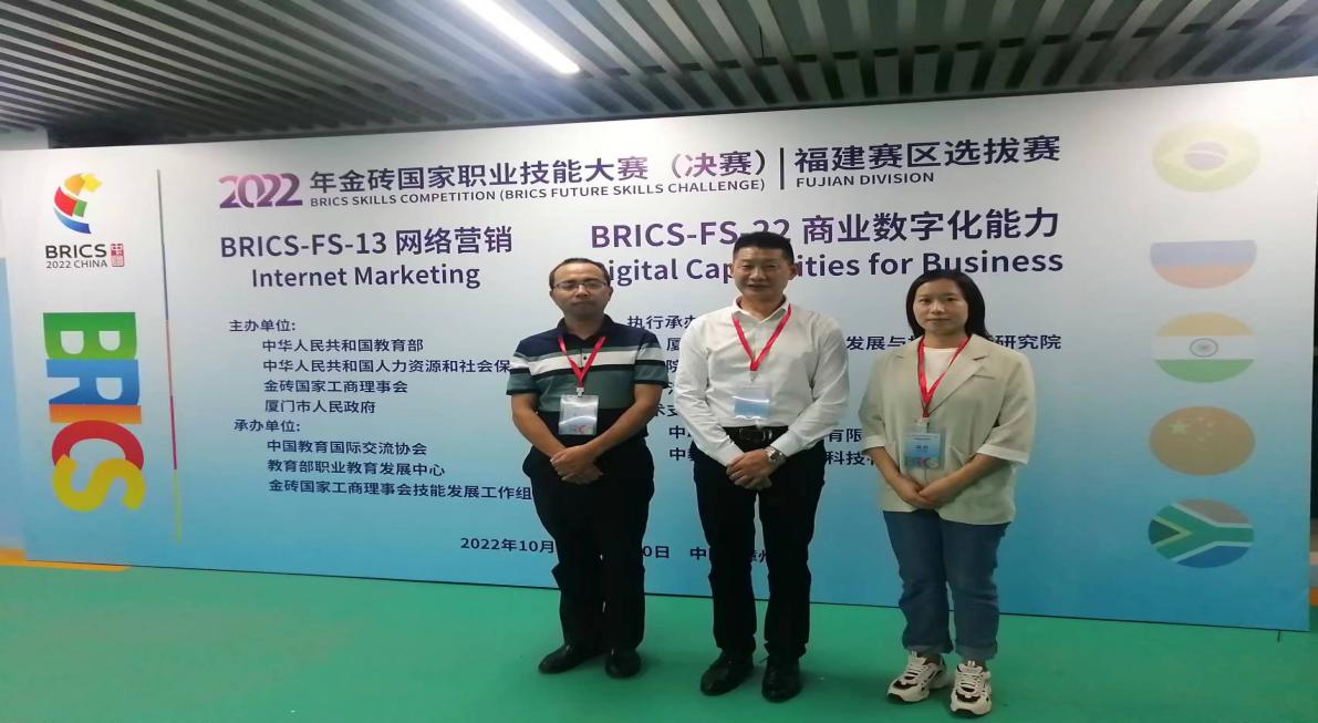 10月9日-10日,beat365官方网站教师郝加祥等老师参与金砖国家职业技能大赛(决赛)网络营销项目评委工作。此次决赛由中华人民共和国教育、中华人民共和国人力资源和社会保障部、金砖国家工商理事会、厦门市人民政府主办,漳州职业技术学院承办。来自福州、厦门、漳州、莆田、三明等八地市的20多所高校代表队参赛。