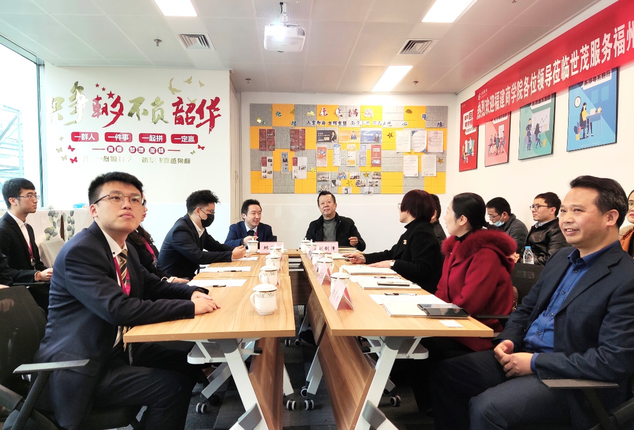 为加强毕业生就业工作,积极响应省教育厅“百校走千企”活动,推进校企合作,2022年2月11日下午,校党委书记刘剑津率我校学生工作部、beat365官方网站党政负责人及专业教师等一行赴世茂天成服务集团(以下简称“世茂服务”)福州中心城市公司开展实地调研。