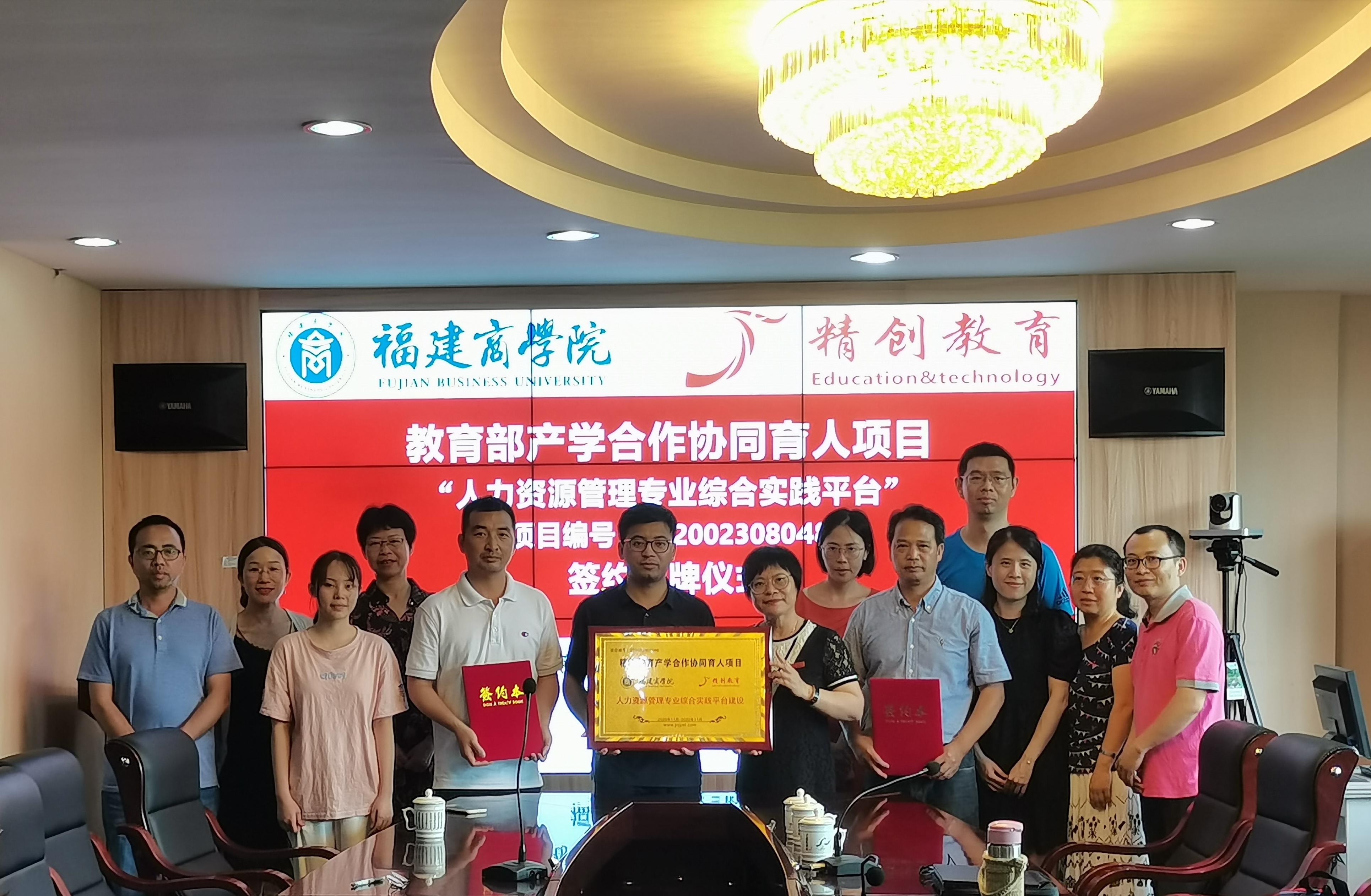 2021年5月11日下午2点,浙江精创教育科技有限公司朱建中总经理来到beat365官方网站马尾校区,对beat365官方网站beat365官方网站人力资源管理系进行2020年第一批教育部产学合作协同育人项目“人力资源管理专业综合实践平台”(项目编号:202002308048)进行签约授牌,beat365官方网站beat365官方网站章月萍院长、纪孝清副院长出席会议,人力资源管理系全体老师以及2020级人力资源管理本科专业、人力资源管理协会的部分学生参与签约授牌仪式。