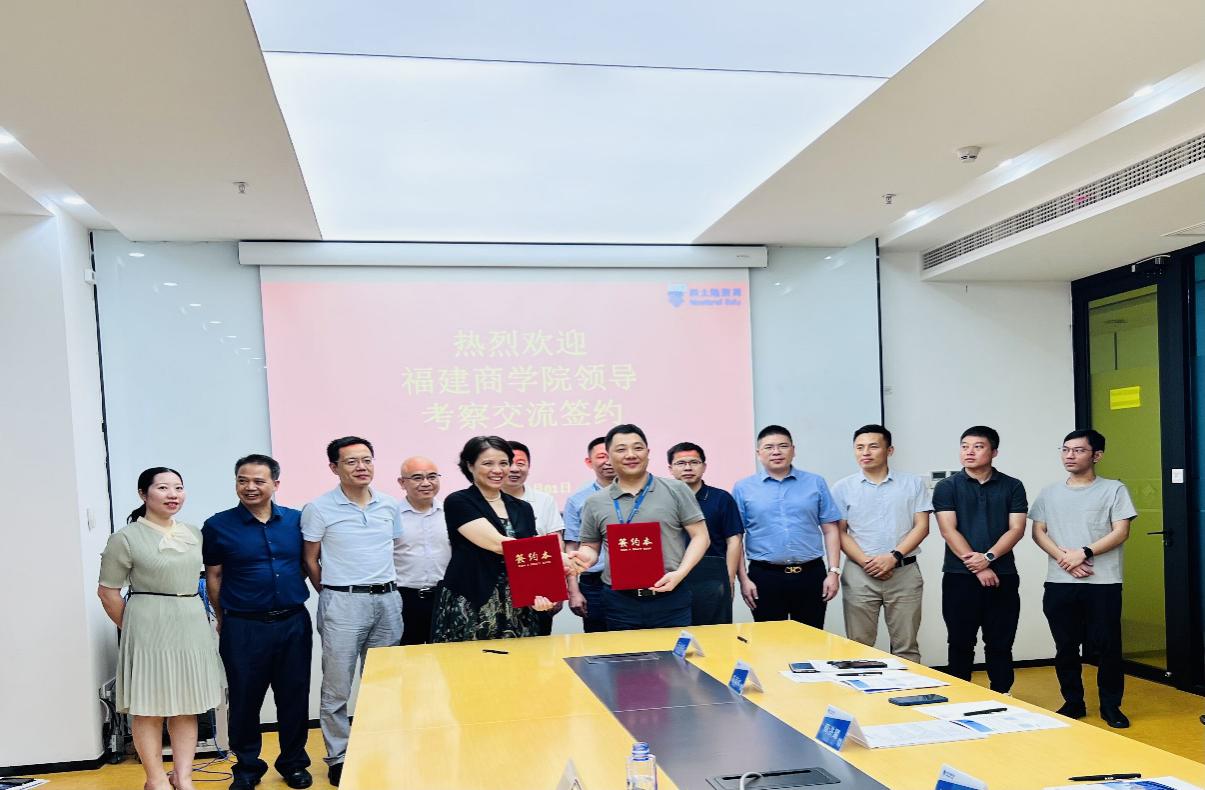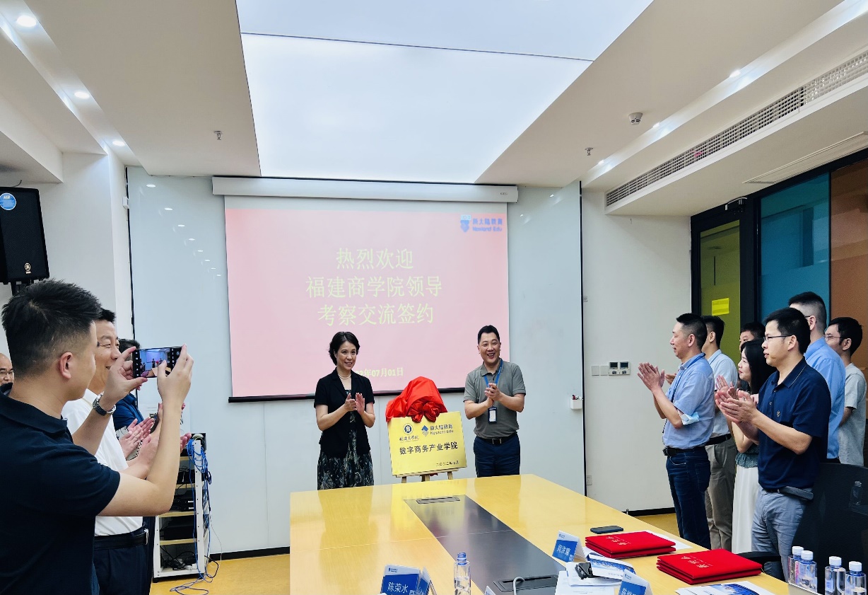 7月1日下午,我校beat365官方网站与新大陆教育集团共建数字商务现代产业学院签约暨揭牌仪式在新大陆教育集团举行。校长程灵、副校长杨晓翔、规划处负责人、beat365官方网站主要负责人及教师代表、信息工程学院负责人、国际经贸学院教师代表等参加会议。