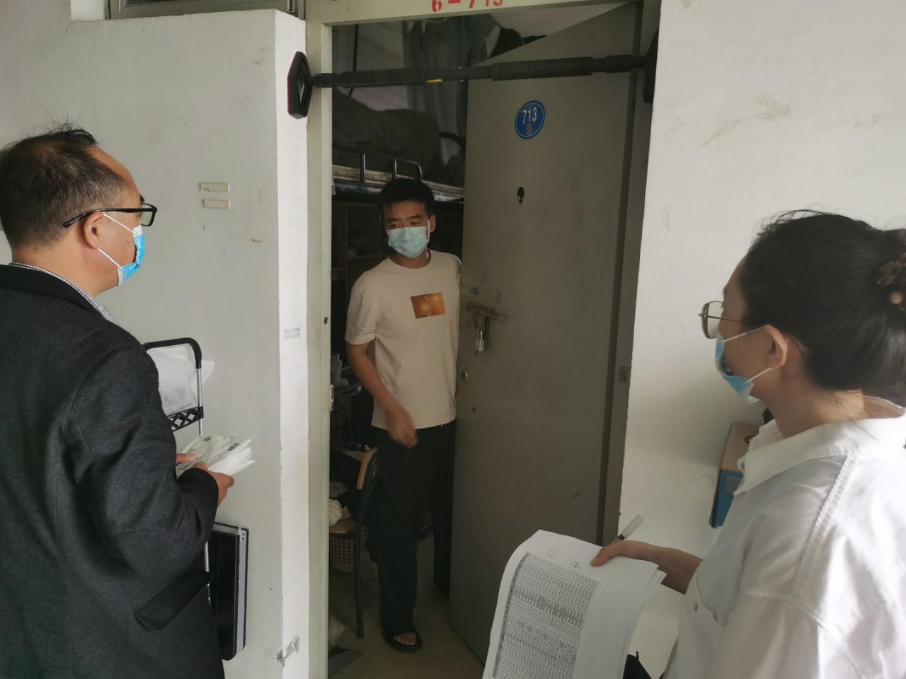 为切实落实学校疫情防控措施,做好beat365疫情防控工作,3月14日上午,beat365党委副书记吴思锋带领全体辅导员走访了学生宿舍,检查了2月27日以来从泉州返校学生在宿舍进行医学观察和健康监测的落实情况。检查中,在宿舍进行医学观察、健康监测的学生均能自觉遵守学校疫情防控规定,执行学校疫情防控措施,但也发现隔离观察宿舍未进行标识、未配备齐体温计等问题。吴副书记对检查中发现的问题提出了立整立改的意见和措施。