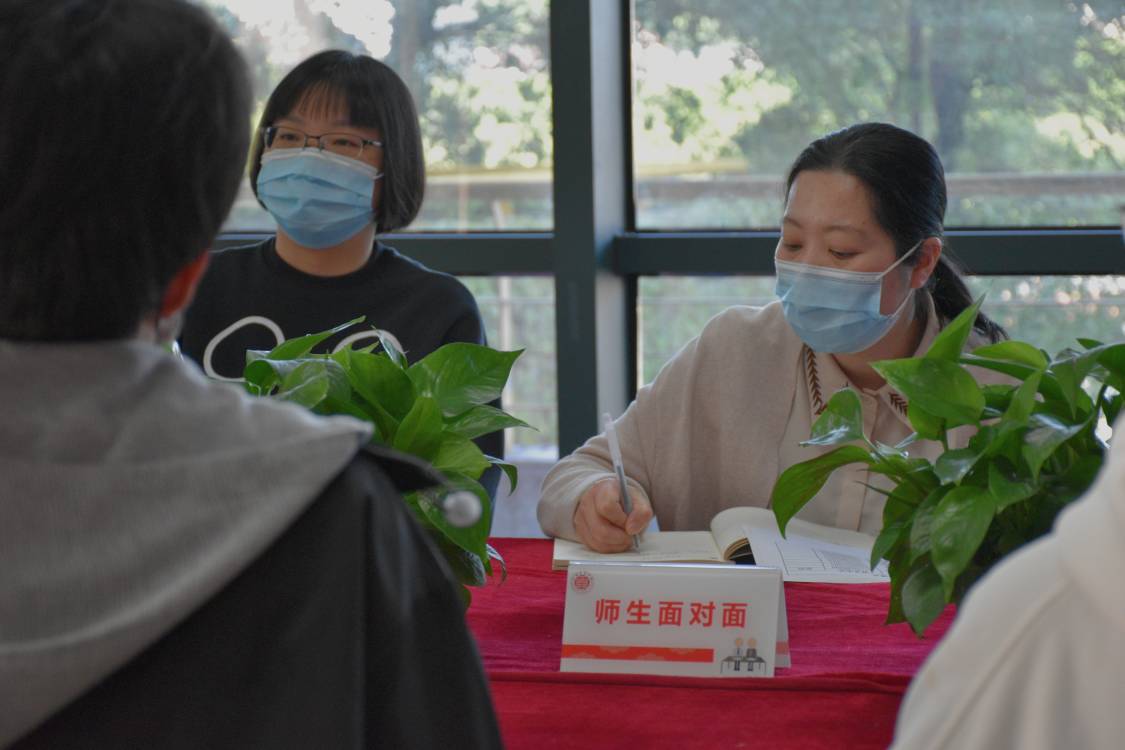学院党委负责人陈达颖对同学提出的建议一一回应。她说,疫情期间院党委多次深入学生宿舍,积极帮助同学排忧解难,千方百计让同学静在校园,安心学习。学生党组织要组建自律学习小组,带头自觉学习的同时加强互帮互助,帮助减少疫情对学业的影响。学院将组织教师和辅导员积极开展心理支持与辅导,及时疏导情绪,耐心细致做好思想引导。同时,学院将进一步加强学风建设,针对不同学生的学习需求开展辅导,如开展“考研引路人”系列讲座等。 “师生面对面”将开展系列活动,是学院“我为师生办实事”实践活动的巩固与深化。学院将持续提升服务水平,努力为学生提供更高质量的学习和生活条件,助力学生成长和发展。