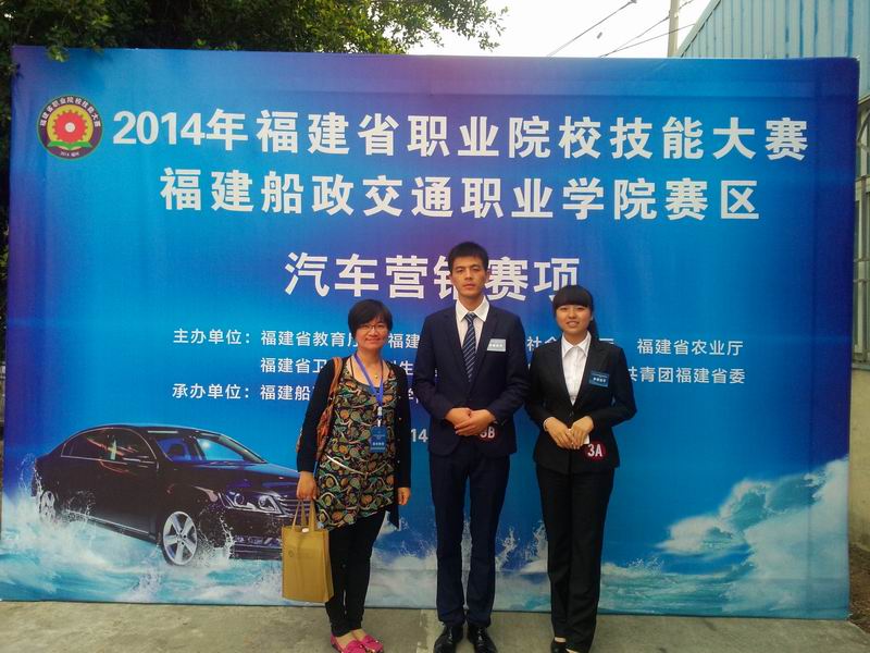 2014年4月28日,2014年福建省高等职业院校技能大赛“汽车营销”项目在福建船政交通职业学院落下帷幕。在邵宇、詹惠娜两位老师的指导下,我系12级市场营销专业游小玲、王伟彬两位同学参加了此赛项,并取得了“三等奖”的好成绩。