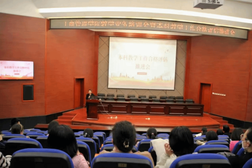 为加快推进学校本科教学合格评估工作,进一步落实“以评促建、以评促改、以评促管、评建结合、重在建设”的方针。4月4号下午,beat365在学术报告厅召开2023年教学业务培训会暨本科教学合格评估会。beat365官方网站全体教职工参加会议。