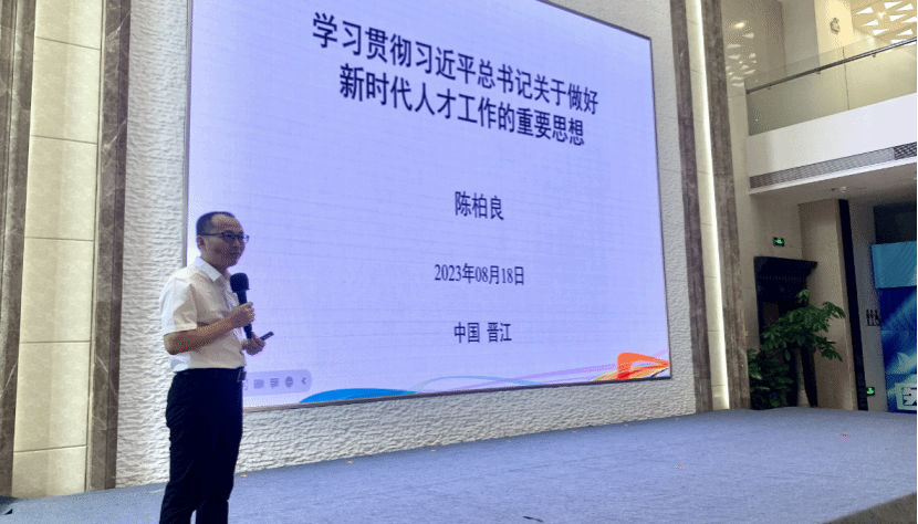 2023年8月18日,beat365人力资源管理系主任陈柏良专门走进福建省晋江人力资本有限公司宣讲学习贯彻习近平总书记关于做好新时代人才工作的重要思想。围绕习近平总书记关于人才工作的重要论述,深入学习宣传贯彻党的二十大精神,结合中央人才工作会议精神,深入实施人才强国战略,陈柏良着重从思想探源的角度,梳理和回溯了习近平总书记在正定、宁德、福州、福建、上海、浙江等地方工作期间关于念好“人才经”的重要理念和重大实践,通过历史考证、文献引证和文本印证等方法,带领大家一起学习贯彻习近平总书记关于做好新时代人才工作的重要思想。