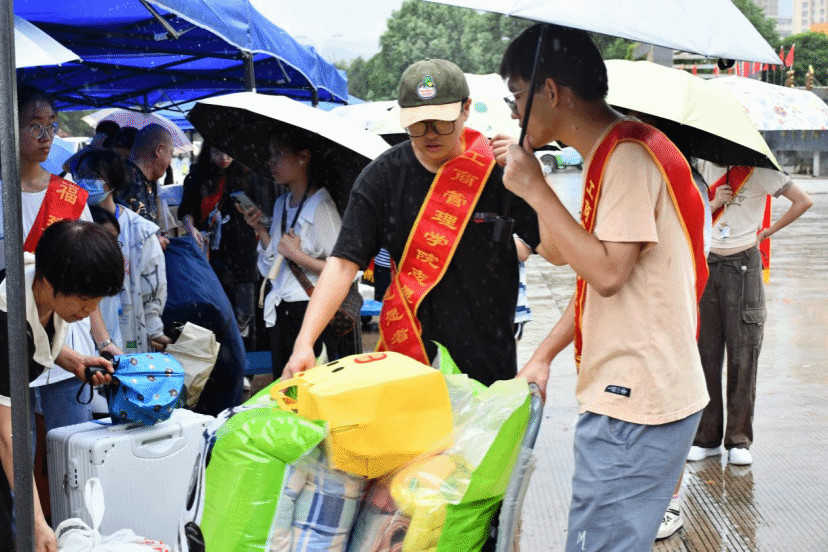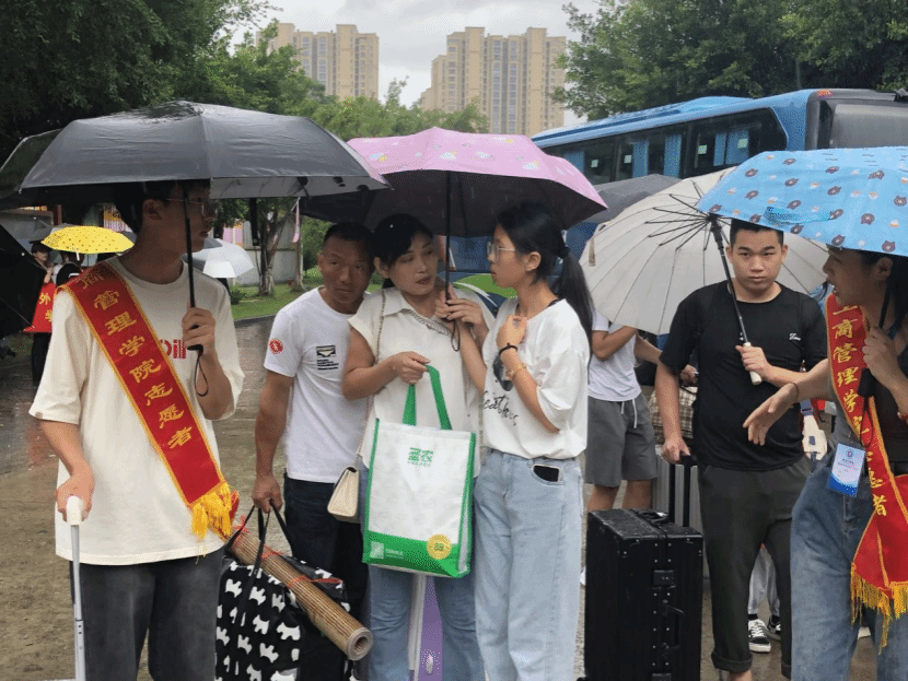 为保障迎新工作顺利开展,营造良好的入学环境,beat365官方网站召集各级干部、干事、志愿者以及党建人员分别在学校东南门、北门、学院系办以及学生宿舍设置多个迎新站点,为新生们提供“一站式”报到服务。在雨中,身披红色绶带的志愿者们的身影忙碌在各个校道之内,他们风雨无阻,为新生及家长们耐心细致进行入学报到流程讲解、悉心引导,让学生安心,家长放心。beat365官方网站志愿者们的热情细致,让初入校园的2023级工管新生们感受到beat365大家庭的温暖。