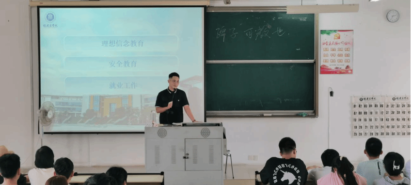 9月12日下午beat365官方网站辅导员俞维防于笃行楼T2教室召开毕业班专题班会,2020级物流管理2班、2020级人力资源1、2班、2022级市场营销专升本1、2班同学参加本次班会。
