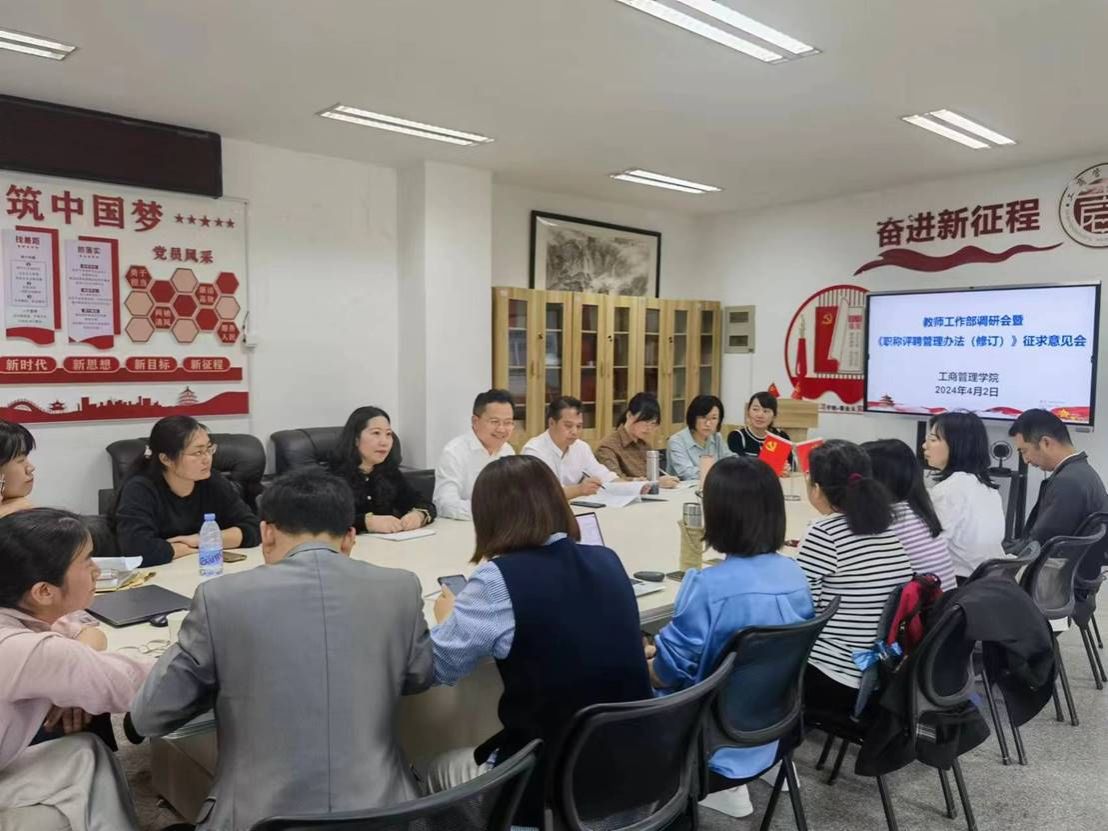 4月2日,教师工作部就职称评聘制度改革,在beat365官方网站党员活动室召开教师代表座谈会。教师工作部部长黄珏群、beat365官方网站党委书记陈达颖、副院长纪孝清、副院长严谨以及各系主任、系副主任、各教研室代表教师参加会议。