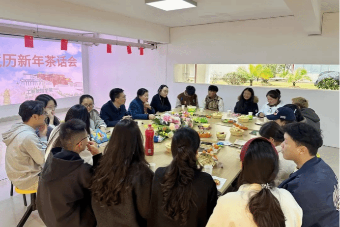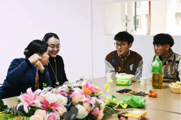 藏族同学热情地分享了藏历新年的独特习俗和家乡趣事,并教大家简单的藏族问候语,现场气氛热烈。老师们也与藏族同学亲切交谈,听取他们的困难和挑战,并给予针对性的指导和帮助。