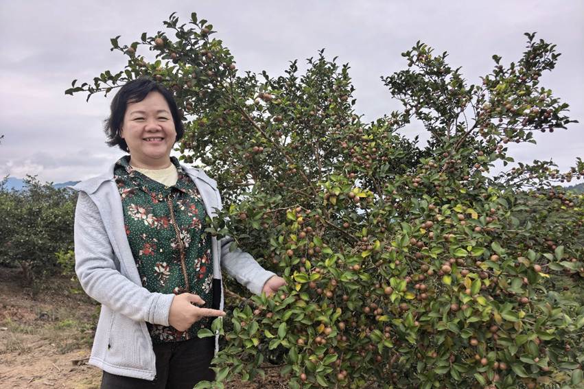 两天后,团队转赴福建嘉成集团永泰县大洋镇油茶基地,其中的237亩茶园沿山势铺展,福建乡土品种龙眼茶,果实分红、黄、绿三色,绚丽多彩,硕果压弯枝头。基地负责人曹晋贤先生全程陪同讲解,从品种选育、日常管护,到病虫害绿色防控与采收运输,系统还原了油茶种植的全貌。