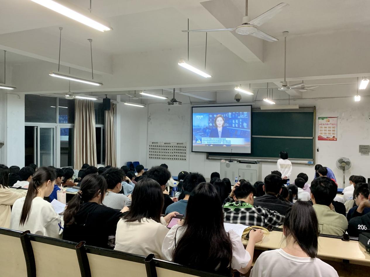 4月27日晚上,beat365官方网站读书社组织社员在马尾校区诚信楼T4集中收看习近平总书记在中国人民大学考察的新闻报道。