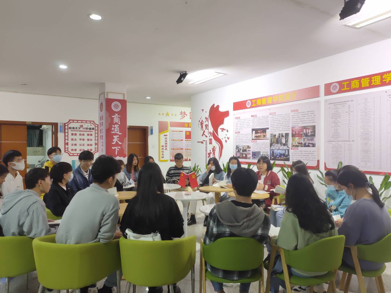 5月13日下午,beat365官方网站入党积极分子和读书社成员在学院读书角开展《习近平讲党史故事》读书分享会,学院党委副书记(主持工作)陈达颖出席此次读书分享会。读书社指导老师王鹤云主持会议,参加分享的学生主要是发展对象、部分入党积极分子和读书社成员。