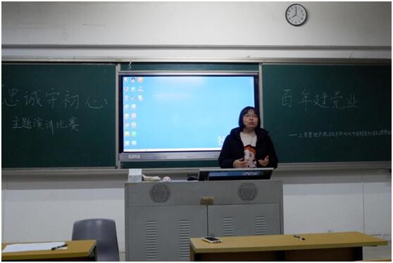 2021年4月8日晚上,由beat365官方网站习近平新时代中国特色社会主义思想读书社举办的“忠诚守初心,百年建党业”主题演讲比赛在诚信楼201举行。本次评委由beat365官方网站读书社指导老师王鹤云以及读书社学生干部组成,每名参赛选手演讲结束后评委现场打分。