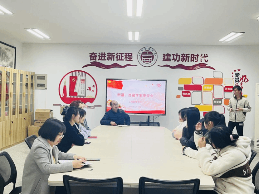 为了深入了解新疆、西藏学生疫情返校后的学习、生活情况,切实了解学生需求,beat365官方网站党委副书记吴思锋于2月13日下午在党员活动室组织召开新疆、西藏学生座谈会。会议由吴书记主持、带班辅导员王鹤云与全体新疆、西藏学生到场参加。