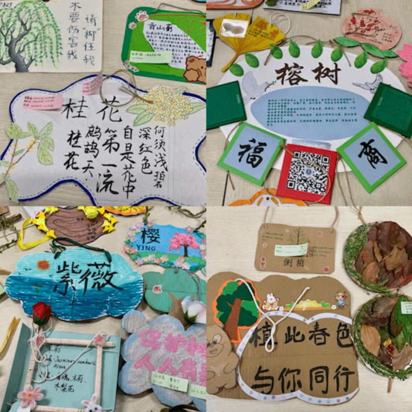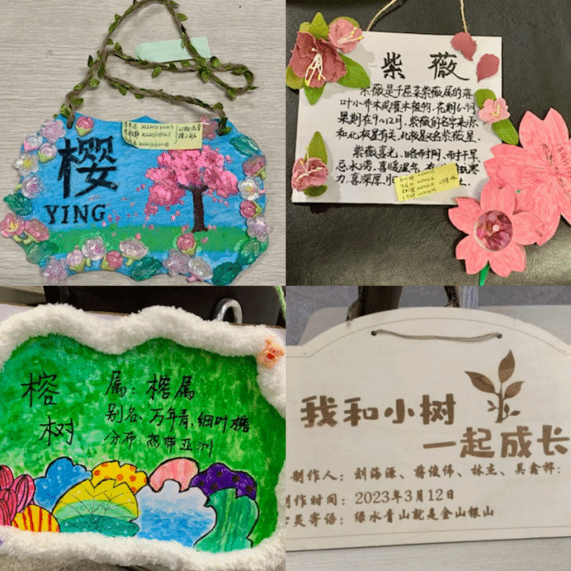 亲身实践就是最好学习。本次活动吸引了近百名同学参与,通过以制作树牌为依托的方式,鼓励同学们主动查询了解各类树木的资料,利用身边的各种材料、资源制作属于自己的独特的树牌。各个树牌上有对所选树木的介绍,也有一句句形式优美、内涵丰富的标语,更有承载着同学们对未来的美好祝愿和期许。
