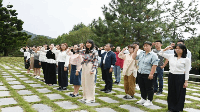 青山埋忠骨,翠柏伴英魂。师生党员缓步前行,来到“长乐地下党革命烈士纪念园”浩气长存碑下。师生党员们整齐列队,重整衣装,面向党旗,举起右拳,庄严宣誓:“我志愿加入中国共产党,拥护党的纲领,遵守党的章程……随时准备为党和人民牺牲一切,永不叛党。”铿锵有力的誓言,回荡在纪念园上空,是党员们对党的忠诚与热爱。