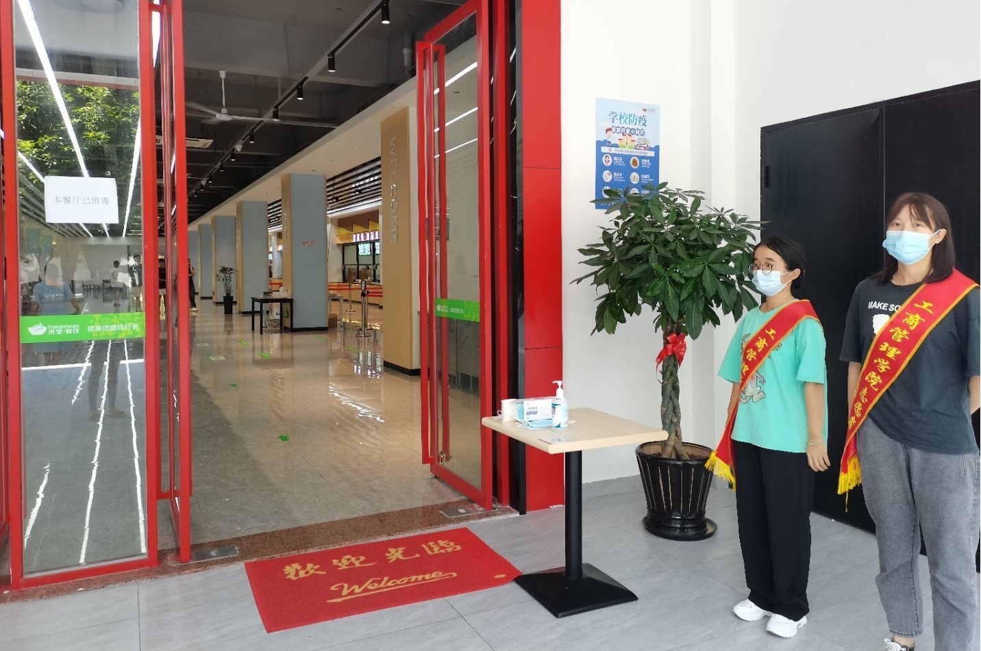 活动期间,志愿者在做好防疫措施的前提下,开展科学防疫及校园防控有关规定的宣传。例如提前备好消毒消杀设备,志愿者们负责在食堂、图书馆等出入口,提醒学生佩戴口罩,引导学生保持安全距离就餐、学习。持续做好疫情防控常态化工作,确保各项防控措施严细落实。