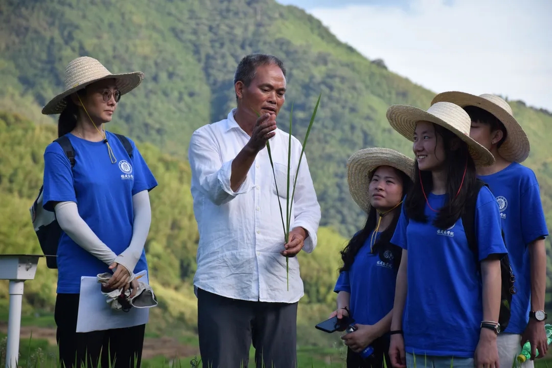 所以青年大学生应该树立正确的择业观,多考虑国家国情,尝试返乡创业,利用自己所学专业知识,促进家乡产业转型,推动家乡经济发展,为乡村振兴贡献青春力量;接着,实践团前往麻洋村、湆头村,加深对再生稻的认识与了解;当日下午,实践团前往全球重要农业文化遗产——联合梯田进行下田实践,实践团在全国劳模卓主任的带领下观察田中水稻,了解水稻种植中需要注意的问题。由卓主任亲自选取稻苗样本进行剥层剖析,详细展示与讲解稻苗的内部结构与稻苗质量的查看方法,引起同学们的浓厚兴趣,并就兴趣点与卓主任展开热络讨论,发表见解与看法。