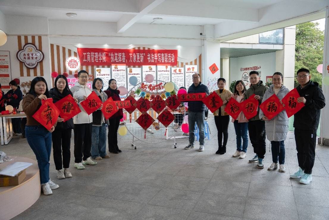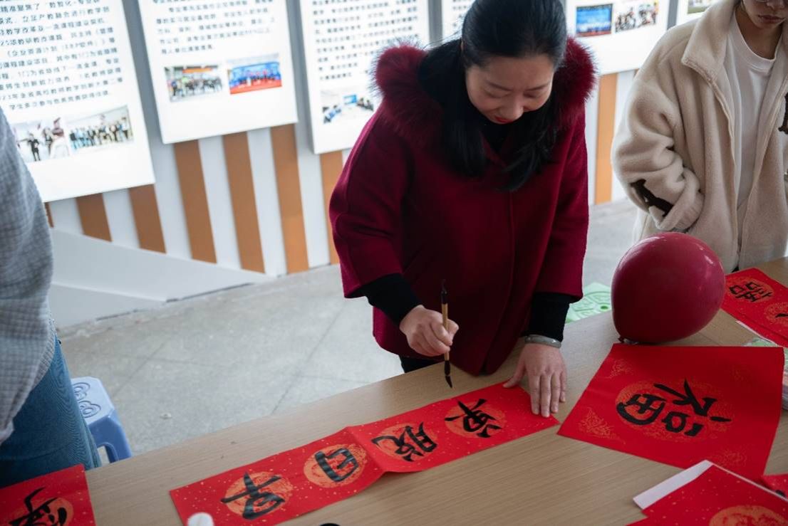 在学院团委的精心组织下,一块特设的书写区域吸引了众多师生的目光。活动现场热闹非凡,铺设整齐的红纸、散发着墨香的毛笔,参与者们挥毫泼墨,笔走龙蛇,一幅幅精美的春联在他们的笔下诞生。有的字迹娟秀,透露出清新雅致的气息;有的笔力雄浑,彰显出豪迈奔放的风采。每一副春联都承载着书写者对新年的期许和愿景,每一副春联都蕴含着书写者的心血和创意,一笔一划都流露出对传统文化的热爱和敬意。