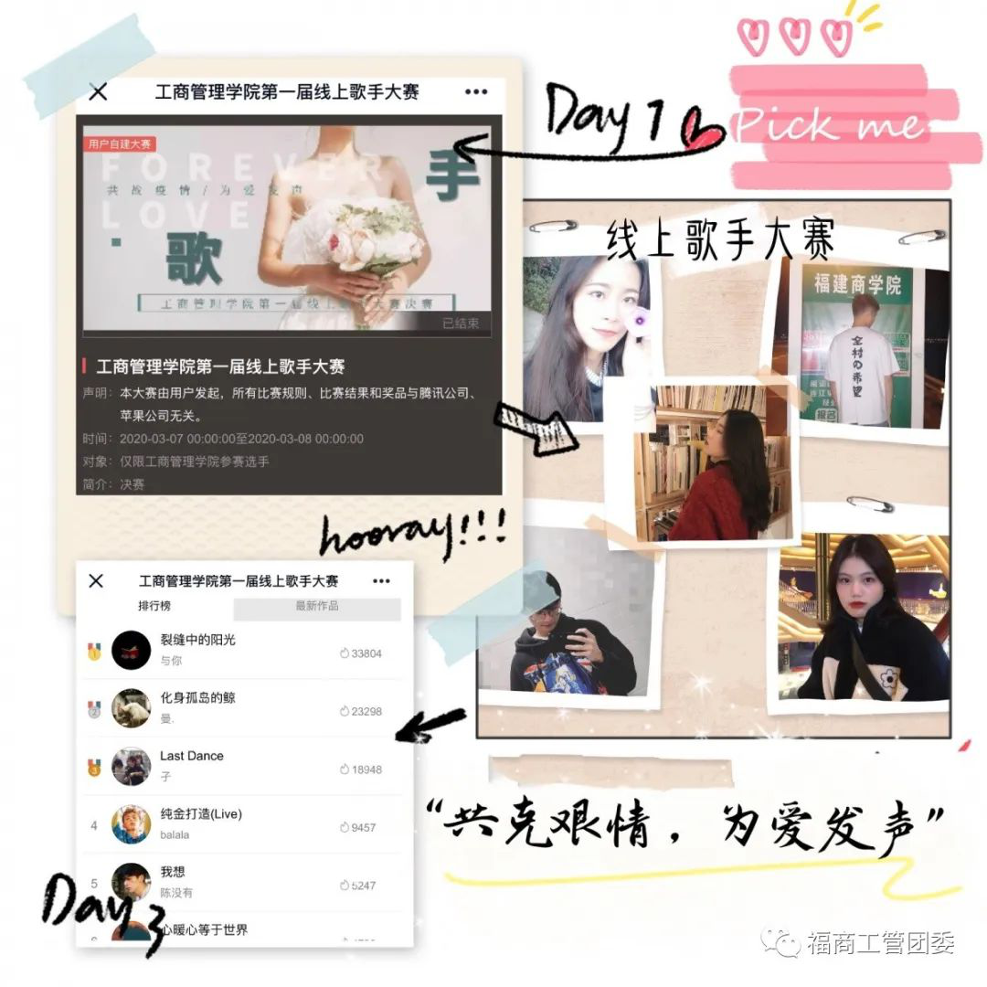 本次线上歌手比赛,为同学们提供了一个展现自我的平台,不仅活跃了校园艺术氛围,还增强了同学们共战疫情的信心,真诚祈愿山河无恙,人间皆安!