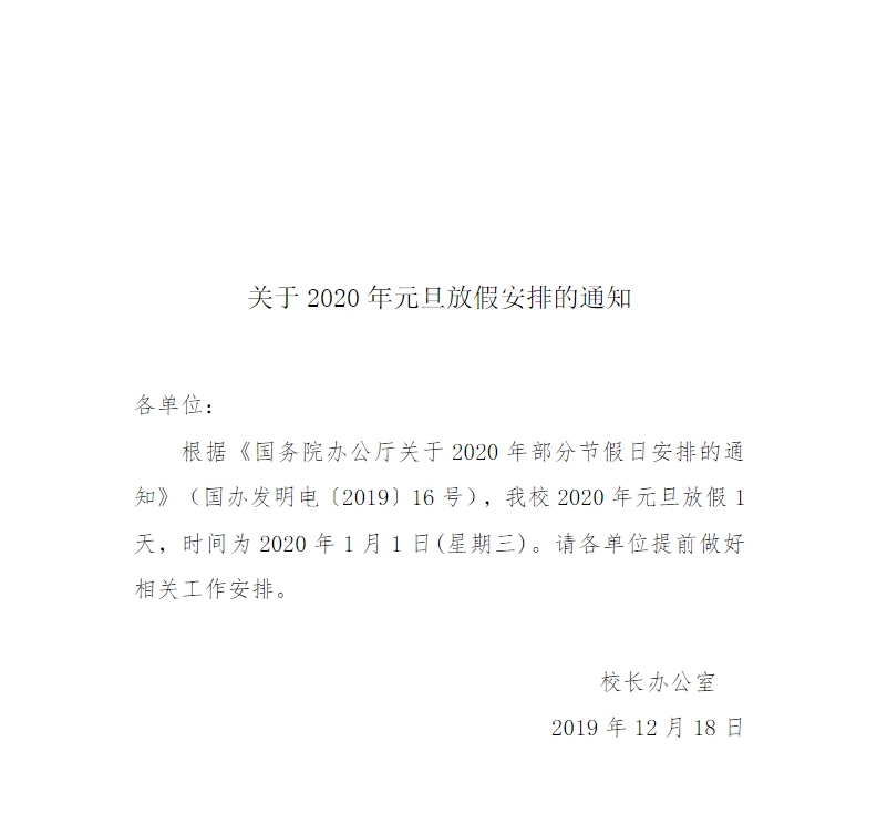 关于2020年元旦放假安排的通知