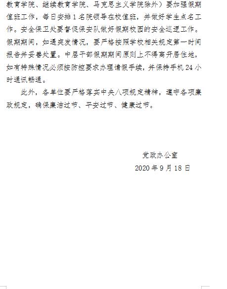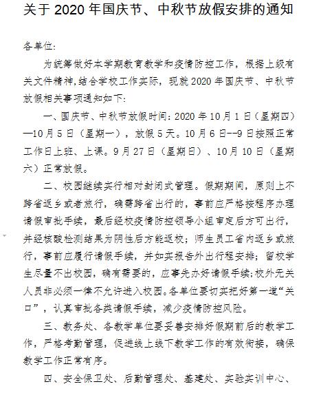 关于2020年国庆节、中秋节放假安排的通知