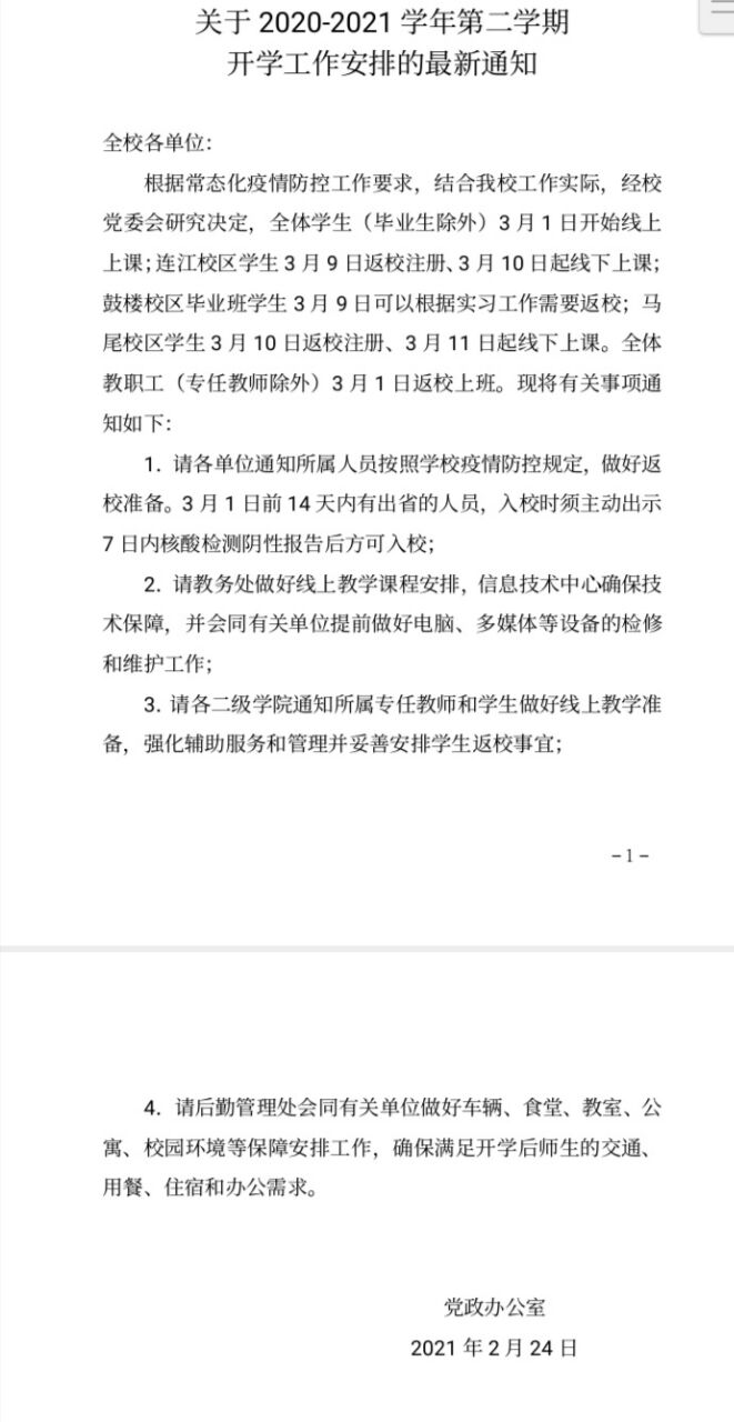 关于2020-2021学年第二学期 开学工作安排的最新通知