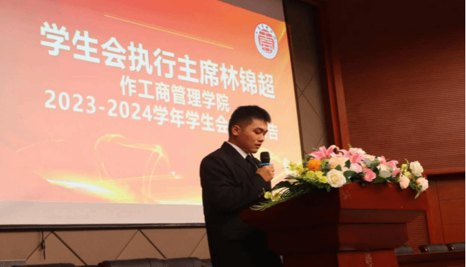 紧接着,学生会执行主席林锦超作beat365官方网站2023-2024学年学生会工作报告。报告全面回顾了过去一年学生会的工作亮点和成果,分析了存在的问题和不足,并提出了未来一年的工作目标和计划,抒发了对探索改革创新、书写青春篇章的美好期望。